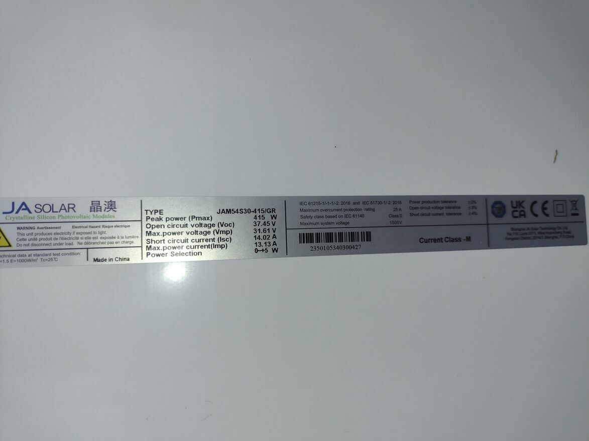 Sprzedam nowy, nigdy nie używany moduł (panel) fotowoltaiczny JA SOLAR 415 W - 5 sztukPanele kupione nowe